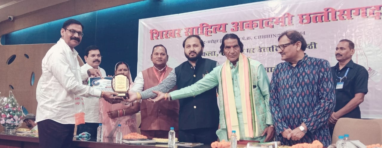 रायपुर 05 सितंबर: साहित्य शिखर अकादमी छत्तीसगढ़ संबद्ध-धरोहर -हमर गौरव के तत्वावधान में आयोजित लोककला, साहित्य,समाज सेवा,कला कृति, शिक्षाविद्, मातृशक्ति, पत्रकार कृषक आदि के लिए आयोजित राष्ट्रीय सम्मान समारोह का आयोजन रायपुर के वृंदावन हाल शिविल लाइन किया गया। इसके अंतर्गत मोहित कुमार शर्मा को सम्मानित किया गया कार्यक्रम के मुख्य अतिथि महाराजा कमलचंद भंजदेव राजमहल जगदलपुर बस्तर, कार्यक्रम के विशिष्ट अतिथि नवीन अग्रवाल जी अध्यक्ष जिला पंचायत रायपुर, पद्मश्री अनूप रंजन पाण्डेय जगदलपुर, पद्मश्री डोमार सिंह कुंवर बालोद, श्रीमती शकुंतला ढिलेन्द्र सेन अध्यक्ष जनपद पंचायत धरसीवां, श्री दिनेश खुंटे उपाध्यक्ष जनपद पंचायत धरसीवां श्रीमती सविता चन्द्राकर सभापति जिला पंचायत रायपुर रहे। इस पूरे कार्यक्रम के संयोजन डां.मन्नूलाल चेलक अध्यक्ष शिखर साहित्य अकादमी छत्तीसगढ़ थे।यह सम्मान छात्रों मे सर्वांगीण विकास, क्रियात्मक अनुसंधान, नवाचार, समाजोत्थान, उत्कृष्ट सेवा सामुदायिक सहभागिता के लिए प्रदान किया गया।