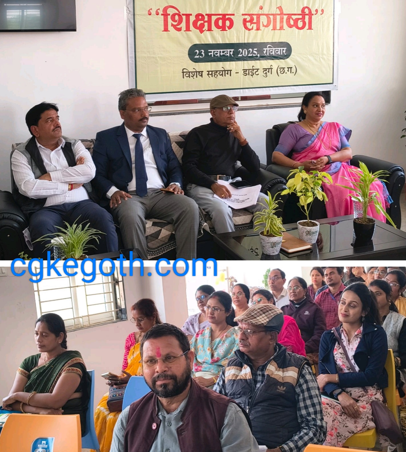 दुर्ग: दिल्ली वर्ल्ड पब्लिक स्कूल चरोदा भिलाई द्वारा डाईट दुर्ग (अछोटी) के विशेष सहयोग से नई शिक्षा नीति 2020 पर आधारित शिक्षक संगोष्ठी का आयोजन दिल्ली वर्ल्ड पब्लिक स्कूल चरोदा में शिक्षा विद डॉ.पी. डी.शर्मा डॉयरेक्टर , श्री पी. सी.मरकले प्राचार्य डाईट ,श्रीमती शिशिरकला भट्टाचार्य , श्री शिशिर प्रकाश प्राचार्य , श्री सत्येंद्र शर्मा , डॉ.सुनीला शर्मा के पावन सानिध्य में सम्पन्न हुआ। शिक्षक संगोष्ठी का शुभारंभ मां शारदे के तैल चित्र में पूजा अर्चना वंदना के साथ हुआ , पश्चात सम्मानीय शिक्षा विदो का स्वागत पौधा भेंटकर किया गया । नई शिक्षा नीति पर चर्चा करते हुए श्रीमती सुनीला शर्मा ने कहा कि नई शिक्षा नीति भविष्य का खाका है यह रटने के बजाय समझने पर जोर देता है । सौंदर्या राव ने ECCE पर अपनी बात रखते हुए बताया कि 3 से 8 वर्ष तक के बच्चे के लिए नई शिक्षा नीति निर्णायक है शिक्षक की भूमिका महत्वपूर्ण होती है । उन्होंने पंचकोश विकास पर जोर दिया ।