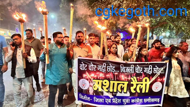 युवा कांग्रेस के कार्यकर्ताओं ने निकाले मशाल जुलूस, वोट चोर गद्दी छोड़ के लगाए नारे