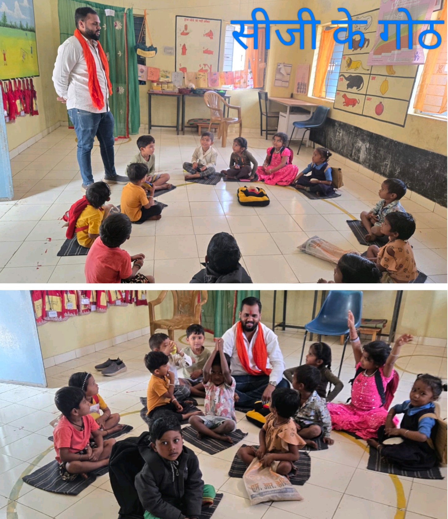 अम्लेश्वर : जनपद पंचायत पाटन अंतर्गत आने वाले ग्राम पंचायत झीट के युवा सरपंच रुपेंद्र राजू साहू ने आंगनबाड़ी  केंद्र 6 पहुँचकर सबसे पहले बच्चों की उपस्थिति और उनकी आयु के अनुसार समूहों का निरीक्षण किया गया। शिक्षण-अधिगम सामग्री (TLM) का उपयोग, बच्चों की सक्रिय भागीदारी तथा शिक्षिका द्वारा अपनाए जा रहे शिक्षण-पद्धतियों का मूल्यांकन किया गया।