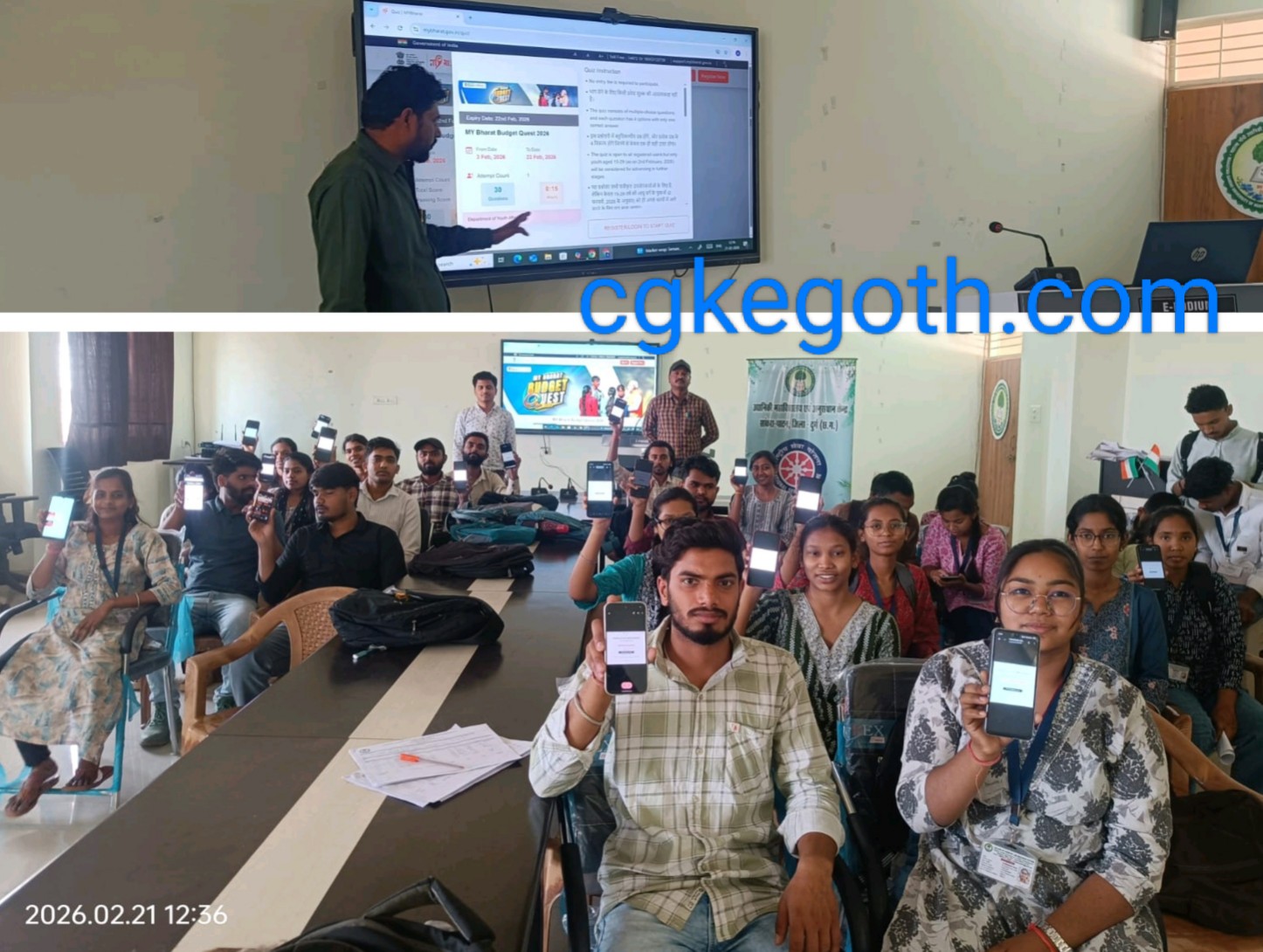 अम्लेश्वर । उद्यानिकी महाविद्यालय एवं अनुसंधान केंद्र सांकरा-दुर्ग के राष्ट्रीय सेवा योजना (NSS) इकाई के स्वयंसेवकों ने आज 21 फरवरी को My Bharat Budget Quest 2026 कार्यक्रम में उत्साहपूर्वक सहभागिता की।