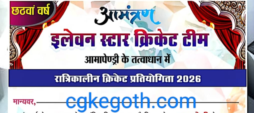 अम्लेश्वर, पाटन। इलेवन स्टार क्रिकेट टीम, आमापेंड्री के तत्वावधान में आयोजित रात्रिकालीन क्रिकेट प्रतियोगिता 2026 का भव्य उद्घाटन समारोह 07 मार्च 2026 को सायं 7 बजे आयोजित किया जाएगा। आयोजन स्थल पर क्षेत्र के खेल प्रेमियों एवं ग्रामवासियों की उपस्थिति में प्रतियोगिता का शुभारंभ होगा।
