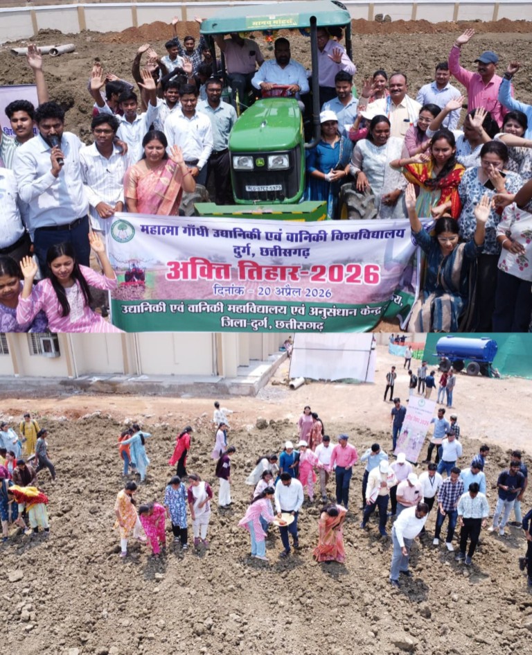 दुर्ग। अक्षय तृतीया के पावन अवसर पर महात्मा गांधी उद्यानिकी एवं वानिकी विश्वविद्यालय, दुर्ग (छत्तीसगढ़) के उद्यानिकी एवं वानिकी महाविद्यालय एवं अनुसंधान केंद्र, सांकरा-पाटन में “अक्ति तिहार” कार्यक्रम उत्साहपूर्वक संपन्न हुआ।