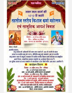 भक्त माता कर्मा की 1010वीं जयंती पर भरर में तहसील स्तरीय विशाल कर्मा महोत्सव एवं सामूहिक आदर्श विवाह का आयोजन